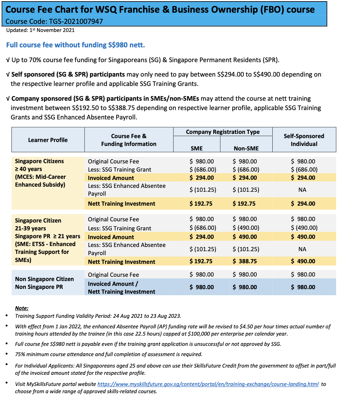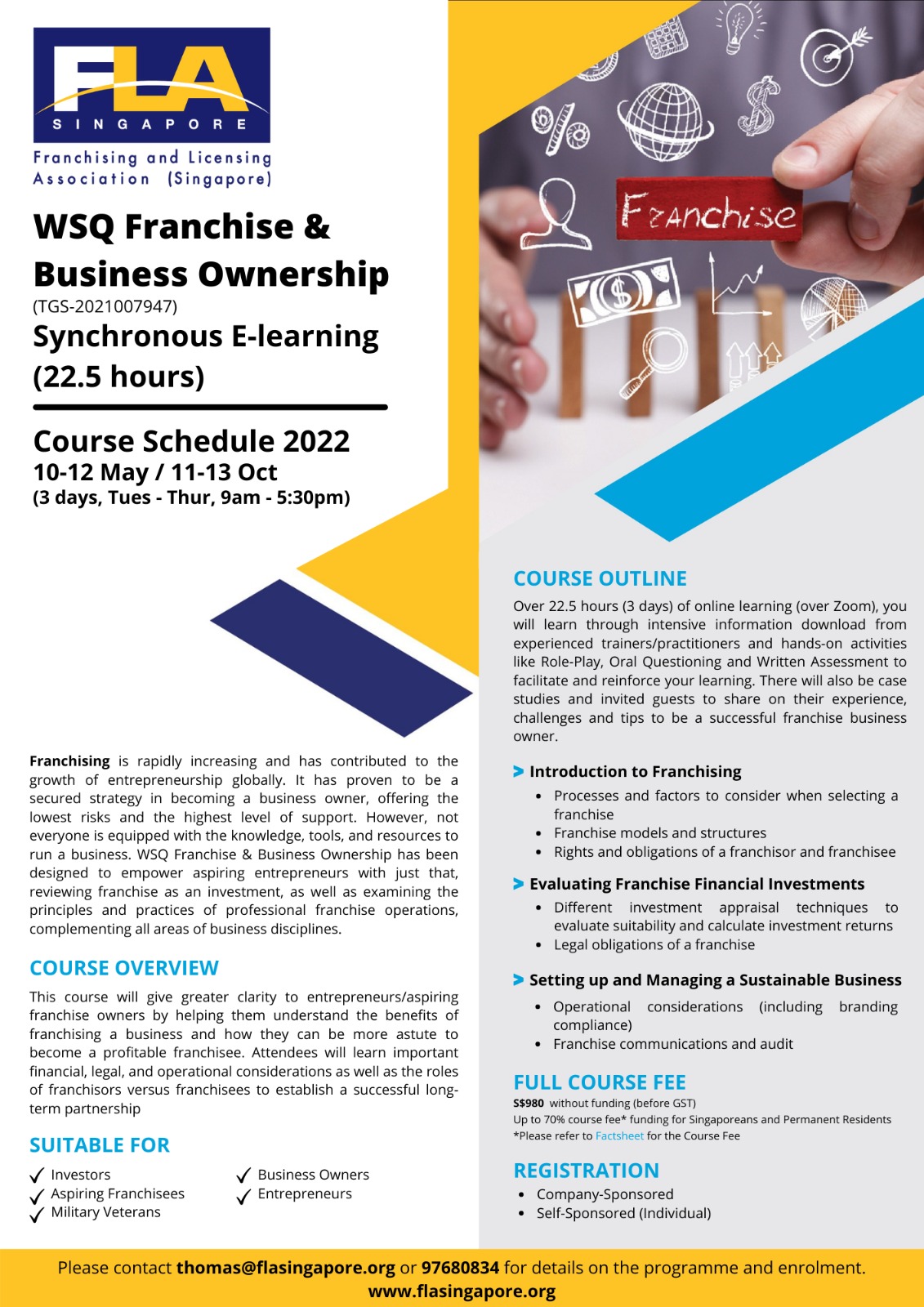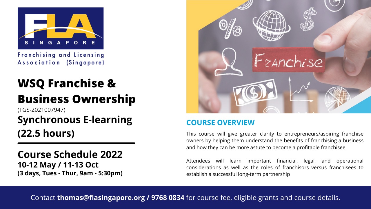 Registration is now open for the WSQ Franchise & Business Ownership for its next course run.